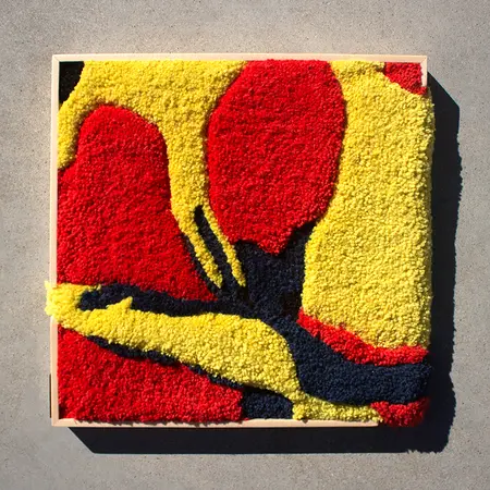 Hand-tufted wool with sculpted relief, integrated pine frame
